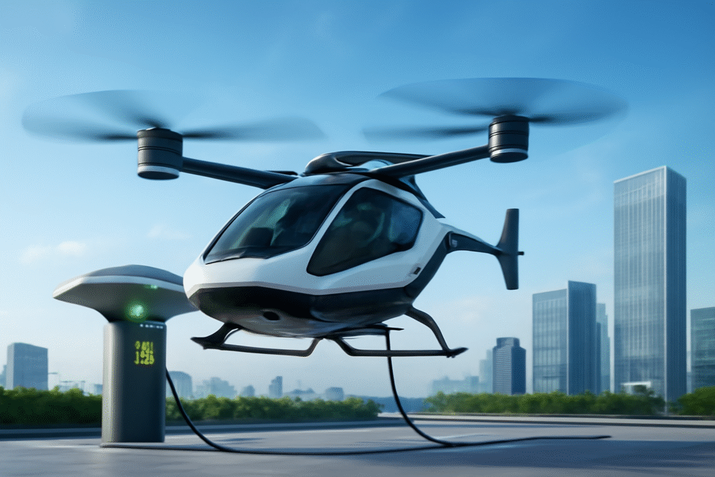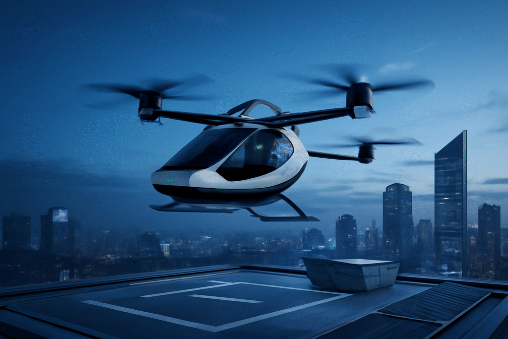 Innovative acoustic design ensures noise levels are far below traditional helicopters, blending into the urban soundscape.