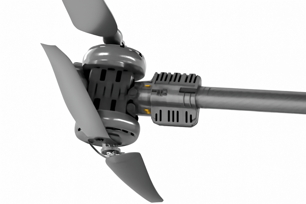 Failure of a single motor does not compromise flight safety; the system automatically compensates for the power loss.
